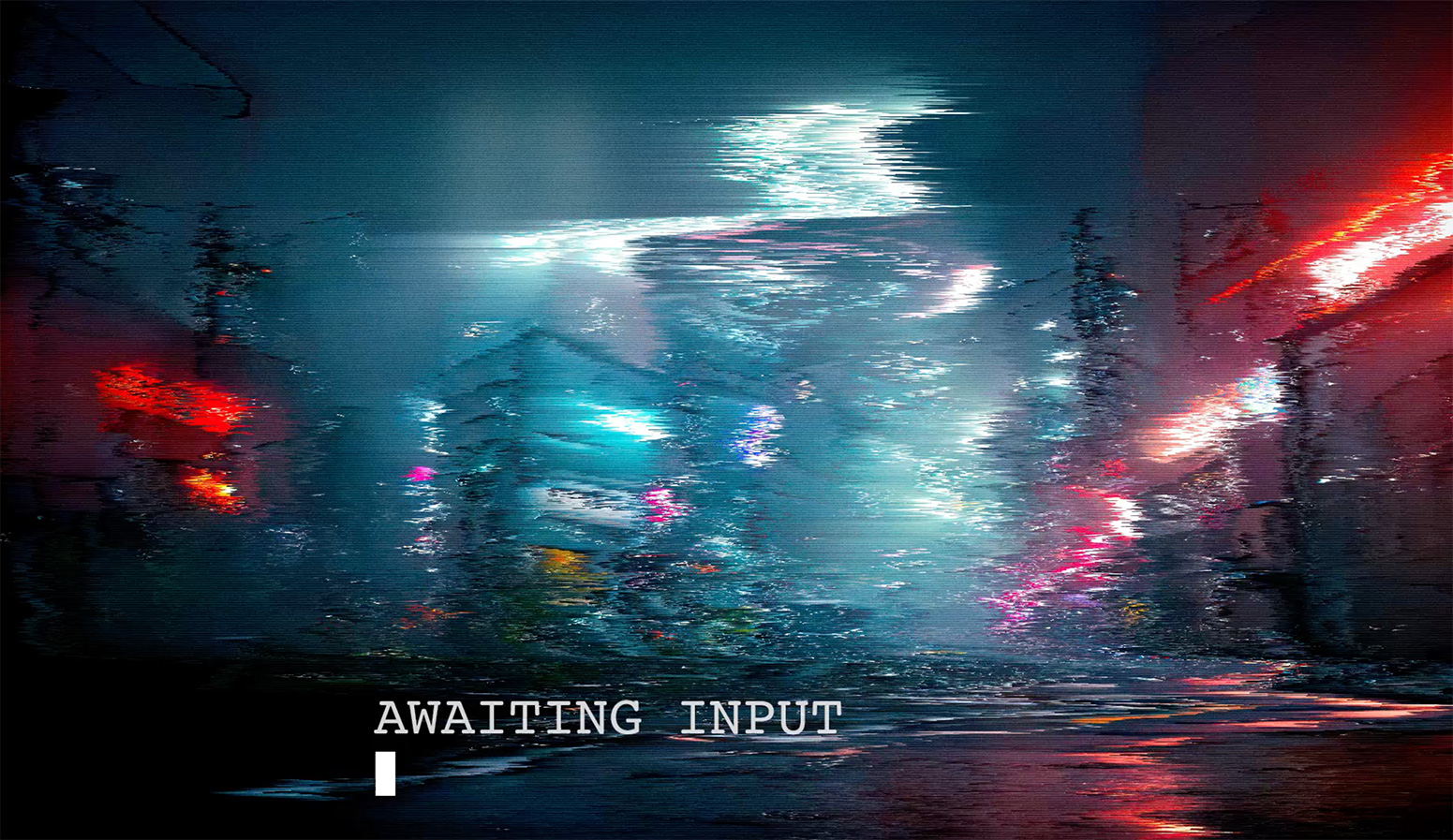'Awaiting Input' video used in the original @0xNavir update/release videos. Features a futuristic cityscape with a heavy glitch effect, 'Awaiting Input' text, and a flashing cursor icon. Designed by NickW @flipbook.